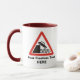 Sinal de aviso de Quayside ou da margem do rio. O sinal de trânsito avisa os motoristas de atravessar a parede para mergulhar na água. Texto personalizado.