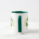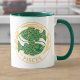 Sinal de peixes do zodíaco em verde e amarelo numa caneca de café de duas tonalidades.