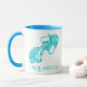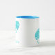 Mug no símbolo do signo solar astrológico Aquarius, num padrão baltal de turquesa e aqua
