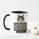 Em dois lados desta caneca bonita está uma imagem de uma cinza e um gato-do-mato branco segurando um sinal que diz "INTROVERT, mas disposto a DISCUTIR GATOS". Entre as imagens está seu texto, nome ou monograma personalizado.