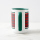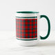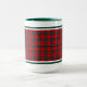 Caneca de café com tartã para Clan Sinclair e suas sebes, incluindo Bower e Lyall. Padrão de xadrez escocesa vermelho-claro e verde-florestal de 1951, com sotaques azuis-reais escuros, preto e branco.