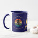 Composição incrível de um esquiador de montanha ou descida contra o fundo do círculo colorido. Um texto "VAIL - 39°38'30"N 106°22'30"W - COLORADO, SKIING ME FAZ FELIZ" da cor amarela-ouro dá a volta à imagem. Impresso de dois lados. Uma imagem de silhueta das montanhas e uma árvore-da-chuva, textos "2024", "CHRISTOPHER", "A vida é melhor nas encostas!" no meio. Todas as imagens e textos são personalizáveis. Você pode alterá-las facilmente de acordo com suas necessidades e desejos. Design de esportes de inverno. Locais populares de esqui nos Estados Unidos da América. Para fundos de cor preta ou escura. O design para fundo de cor branca ou clara também está disponível. As respectivas versões para as mulheres estão à sua espera. Você pode transferir este design para uma variedade de produtos. Tenha uma boa pausa de café!