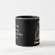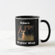 A caneca do caçador com cervos e nome personalizado na parte dianteira. A parte traseira diz "um dia mau de batidas da caça um o bom dia no trabalho." Copo de café engraçado para caçadores.
