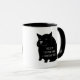 Smiling smugly because he ate your dinner and he knows he's cute enough to get away with it.
