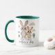 This mug features a soft illustration of a mother and baby bunny in a calm nursery style. The gentle pastel tones and simple shapes create a warm and balanced look for everyday use. The design remains clear and easy to read while keeping a soft emotional tone. You can edit the name and year on the design to make it more personal.