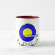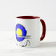 Uma caneca de café de cerâmica de alta qualidade com um design gráfico moderno ousado em azul e amarelo. Perfeita para uso em casa ou no escritório, adicionando um toque de estilo artístico à sua rotina diária."