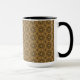 Esta caneca apresenta um padrão de tom repetitivo em tons de ouro e marrom.