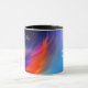 Detalhe da asa de uma fênix arco-íris voando através do espaço numa nuvem nebulosa azul e roxa num céu noturno estrelado. Um aglomerado de estrelas espumante forma a constelação de fênix. ♡ Idyllfire