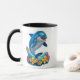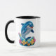 Esta renderização em 3D apresenta uma charmosa caneca de café de cerâmica branca, apresentando um golfinho lúdico que salta alegremente da água. O golfinho é rodeado por flores vibrantes e coloridas em tons vivos de rosa, amarelo e laranja, somando-se à atmosfera química e alegre do design. Perfeito para amantes do café que apreciam um toque divertido e animado para a sua rotina matinal, esta caneca exumenta positividade e traz um sorriso para qualquer dia.