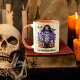 Comece suas manhãs de época assustadora com um "Feliz Matey de Halloween!" Esta pirata festiva caneca do Halloween apresenta um pirata esquelético ralado rodeado por pílulas, morcegos assustadores e árvores esqueléticas - tudo colocado contra um pano de fundo do mapa do tesouro meteorizado. Quer você esteja bebendo picada de abóbora ou sidra quente, esta caneca traz o charme assombrado do alto mar para cada cerveja. Personalize o texto em negrito para se adequar à sua mensagem, seja para um presente de Halloween, favor do partido ou tratamento pessoal. Escolha entre várias opções de alça e cor interior — incluindo branco clássico, laranja estranho ou preto fantasma — para corresponder ao seu estilo de Halloween. Parte da Coleção de Halloween Pirata de cheio, esta caneca coordena-se perfeitamente com convites, suprimentos de festas e roupa. Levante sua caneca, diga "Arrr!", e beba em estilo assustador!