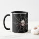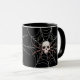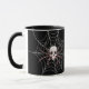 Única aranha-do-céu do tema das bruxas no Halloween numa teia-aranha com uma caneca de café preta. Esta caneca seria um presente perfeito para qualquer um ou um excelente adicional para uma festa temática de Halloween. Vem em uma variedade de cores para o dentro e a alça da caneca.