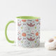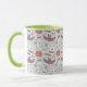 Este design é um padrão temático do Dia das Bruxas com um design caprichoso e lúdico. A cor de fundo é um azul pastel macio, e é preenchida com vários ícones e símbolos do Halloween.