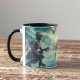 This elegant winter messenger travels along the ice on ice skates in this steampunk Victorian fantasy world towers a tower in this detailed fantasy artwork mug.