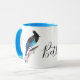 Em blues, turquesa, preto e pistas de taupe, um monte de Steller senta-se no seu perch do Flor de Cereja japonês observando a atividade abaixo. Estas belas aves azuis são nativas da Colúmbia Britânica e têm um distinto grito de som "clatter". Esta ilustração foi inteiramente desenhada usando um mouse - e uma das muitas ilustrações em minhas coleções de arte no Zazzle. Faça-o seu ou dê como presente com uma opção de texto totalmente personalizável.