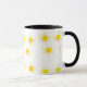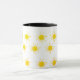 Padrão solar numa caneca. O sol brilha por um bom humor, um dia feliz nesta caneca.