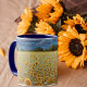A minha obra de arte original aparece nesta bonito caneca de flores, que consiste na minha fotografia original de um campo de ouro e céu. A imagem foi processada com efeito de fantasia de aquarela para um campo de girassol ilustrado e aparência caprichosa. O dentro da xícara e da pega são um tom azul para complementar o trabalho de arte. Estas são canecas de 11 onças, do tamanho perfeito para o café ou chá da sua casa - ou até chocolate quente! Ele faria um presente de excelente, e você pode colocar pacotes de café, bolsas de chá ou dentro de chocolate quente. Uma outra ideia de presente é colocar uma pequena planta nela para torná-la mais especial para o seu amado.