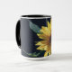 Girassol de solteiro grande com fundo escuro. A imagem vem de uma foto que tirei de um girassol crescendo no meu jardim.
