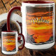 Pintura da Coleção "Sunset Plaza Marina 2584" Escolha uma caneca de café engraçada, única, bonito ou pessoal. A caneca tem um exterior branco para personalizar nesta design, com uma borda colorida e uma alça para combinar com seu prato ou com a sua sombra favorita. O design criado da minha pintura "Sunset Plaza Marina 2584" captura um pôr do sol vibrante enchendo o céu, enquadrado pela vegetação silenciosa e plantas floridas no primeiro plano. Captura um pôr do sol a norte da Plaza Marina em Puerto Vallarta, México. Os produtos correspondentes estão disponíveis nesta coleção.