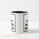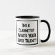 Um slogan engraçado numa caneca de café com dois tons que diz "Sou um Clarinetista. Qual é o seu super talento?" Dois Tone Coffee Mug para um Clarinetista ou alguém que toca clarinete. Texto preto e branco em negrito.