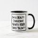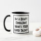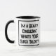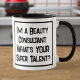 Um slogan engraçado numa caneca que diz "Sou um Consultor de Bela. Qual é o seu super talento?" Dois Tone Mug para um Consultor de Bela. Texto preto e branco em negrito.