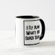 Um slogan engraçado numa caneca de dois tons que diz "Eu voo aviões. Qual é o teu super talento?". Dois Tone Mug para um piloto de linha aérea. Texto preto e branco em negrito.