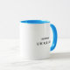 Apoie a Ucrânia com esta caneca de café azul e branca. O texto preto faz uma declaração ao mantê-lo simples. Zelensky ficaria orgulhoso. Design original de Ken-Ray.