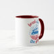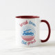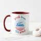 Uma caneca de café com um carro com uma prancha de surfe no topo, com a frase "Quebrar da Grind" centrada em torno da imagem. A design sugere uma fuga cuidadosa e aventureira da rotina diária.