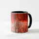 Noite vermelha com estrelas e pássaros numa caneca legal.