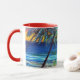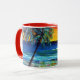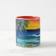 Pintura do pôr do sol impressionista com reflexos vermelhos na fenda da costa. A pintura intitulou o pôr do sol da Kim.