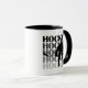 Um jogador e um texto pretos de hóquei da silhueta que leia o "hóquei" em t-shirt do hóquei, sacolas, cartões, etiquetas, canecas, e outros roupa e presentes do hóquei, perfeitos para jogadores de hóquei ou fãs de hóquei!