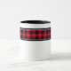 Esta caneca de café cerâmica é mostrada com um impressão de xadrez de búfalo preto e vermelho e duas riscas de sotaque pretas. Personalize este item ou comprar como está. Imagem do stock freepik.com all-free-download.com