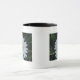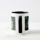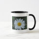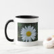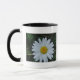 Eine grosse, weisse Margeritenblüte auf einem dünnen beigen Stäbchen, vor dunklem Hintergrund ist auf dieser Tasse, hier mit schwarzem Rand und Henkel. Die Farben für Rand und Henkel sind wählbar. Die Tasse ist em verschiedenen Varianten erhältlich.