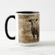Fotografia a vapor em tons de sépia. O símbolo astrológico Taurus é o Touro, visto aqui em uma fazenda de madeira para oeste. Palavras na caneca dizem "Taurus the Bull" mas você pode mudá-las para o que quiser. Basta clicar em Personalizar. Aproveite! Foto por WindyDesign