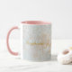 O tema da astrologia legante, o zodiac Taurus, sigla de estrela Bull Coffee Mug, sobre um fundo cósmico sutil azul de gelo malhado. O nome do monograma e os detalhes de texto da tipografia popular podem ser facilmente personalizados. Um toque de brilho de ouro falso celestial adiciona um pouco de glamour e mística. Disponível em todos os 12 sinais de zodíaco