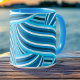 Este design contemporâneo apresenta fitas turquesas, azuis e teais giradas em um design dinâmico e contemporâneo. As espirais de abstrato adicionam movimento e as cores funcionam bem como complementam uma decoração azul ou sotaques a uma decoração neutra.