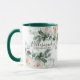 Esses presentes modernos de noivas podem ser usados para madrinhas, madrinhas de casamento, mãe de noiva e noiva.Edite o texto conforme desejar. As bonito rosas brancas de aquarela e as folhas verdes de sábio Eucalyptus aparecem neste presente de festa noiva.