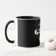 Uma caneca legal, alegre, positiva e moderna com a mensagem "Tenha um bom dia!" com um emoji piscando e um emoji vestindo sombras. Faria um presente de excelente.