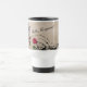 Olá!, lindo! Sua beleza interna está mostrando a caneca de viagem com imagem do bordado, rosa vermelha e padrões do redemoinho que criam a cara de uma mulher em Borgonha, em vermelho, em bege, em preto e em bronze.