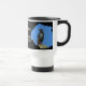Um elegante estorninho mostrando suas penas pretas iridescentes se posou sobre um cacto neste chá de viagem ou uma caneca de café feita especialmente para seu avô. O arco-íris de cores mostradas na luz do sol brilhante mostra a beleza deste pássaro. Esta foto da natureza aparece contra um fundo preto na frente e oferece um preto sólido no verso. "Minha vovó é um observador profissional de pássaros" pode ser facilmente personalizada para expressar qualquer coisa que você desejar.