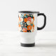 A travel mug decorated with bold orange, coral, and cream florals on a deep background, offering a modern, elegant look for drinks on the go and a stylish gift for anyone who loves artistic, colorful drinkware.