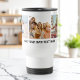 Crie sua própria caneca de viagem personalizada de colagem de fotos com 3 de suas fotos favoritas ao lado de texto personalizado para qualquer ocasião.