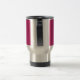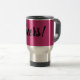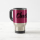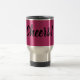 Caneca cor-de-rosa metálica com elogios do subtítulo os "perfeitamente na linha de seu humor de viagem feliz