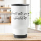 Crie a sua própria caneca de viagem personalizada de aspas com seu ditado favorito, letra de música ou texto personalizado em caligrafia elegante de script.