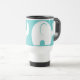 Elefante branco divertido e caprichoso, caneca design silhueta sobre fundo aqua, ou selecione uma nova cor de fundo de sua escolha.