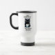 Engraçado caneca de viagem para misantropos apresentando um gato preto rabugento com uma xícara de café e o texto, "Odeio pessoas matinais... e manhãs... e pessoas."