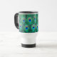 Array de penas de pavão impressionantes em tons de lacaio, azul, verde, aqua.