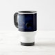 A Terra e a Lua iluminadas de novo pelo Sol; acompanhadas da leitura do texto, "Pequeno planeta; frágil. Tenha cuidado com isso."