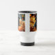 Caneca de viagem com um adorável gato preto vestindo o chapéu de bruxa! Esta pequena bolinha se posou com uma abóbora. O outono deixa tapete no chão da floresta. Um presente perfeito para as comemorações do Dia das Bruxas!