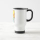 Caneca de viagem com uma imagem de vidro manchado com as mãos rezando.