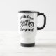 Uma caneca de viagem com uma motocicleta monocromática, com a frase "Break from the Grind" centrada à volta da imagem. A design sugere um senso de aventura e liberdade, oferecendo uma fuga pacífica da rotina diária.